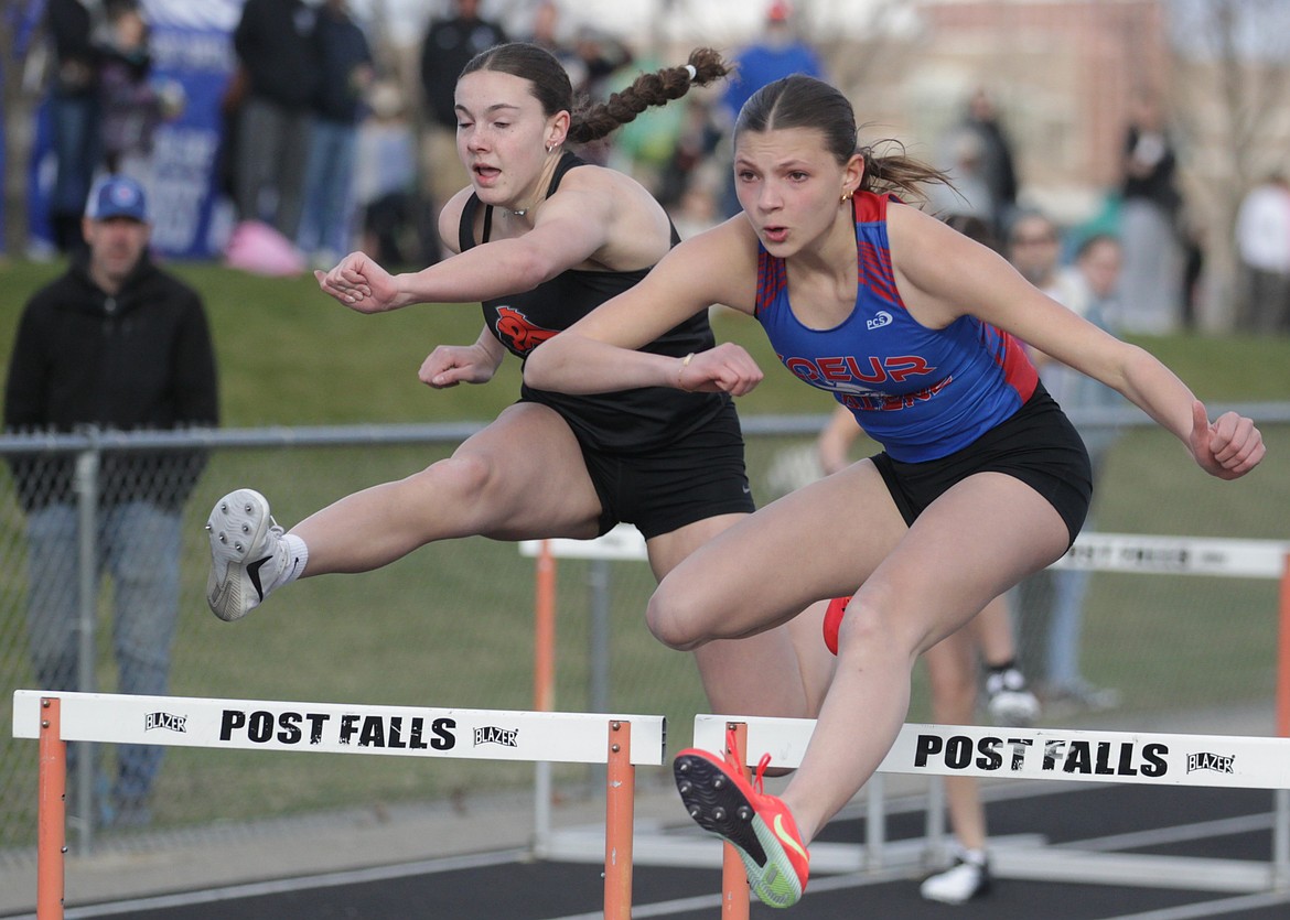 100 hurdles — 1, Alexis Hoss, Coeur d’Alene, 16.85. 2, Annabelle Tucker, Post Falls, 17.15. 3, Cadence Davis, Post Falls, 18.15. 300 hurdles — 1, Alexis Hoss, Coeur d’Alene, 48.05. 2, Karstyn Kiefer, Lakeland, 48.63. 3, Annabelle Tucker, Post Falls, 50.28. 4x100 relay — 1, Lakeland (Ashlyn Karle, Casey Foster, Karstyn Kiefer, Sapphire Ruelle), 50.62. 2, Coeur d’Alene, 51.78. 3, Coeur d’Alene, 56.77. 4x200 relay — 1, Lakeland (Ashlyn Karle, Tessa Lovell, Jordin Cysewski, Karstyn Kiefer), 1:49.83. 2, Coeur d’Alene, 1:59.28. 4x400 relay — 1, Lakeland (Kapree Kiefer, Tessa Lovell, Sapphire Ruelle, Karstyn Kiefer), 4:11.97. 2, Post Falls, 4:18.54. 3, Coeur d’Alene, 4:23.45. Distance medley — 1, Post Falls (Angelique Averette, Emmalyn Sorensen, Ainsley Parker, Dorothy Pope), 13:47.76. 2, Lakeland, 14:01.74.