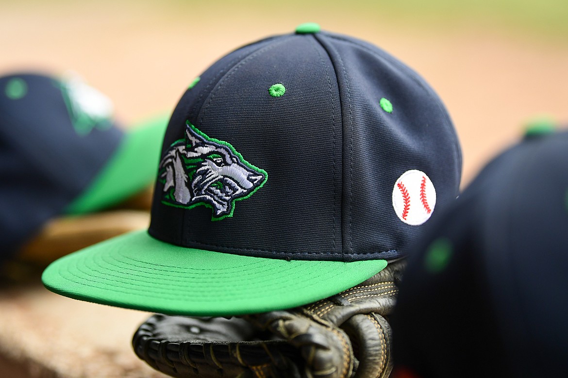 Glacier Wolfpack baseball hats line the dugout as the team takes on Belgrade in its season opener at Griffin Field on Saturday, March 28. (Casey Kreider/Daily Inter Lake)
