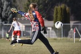 Photo by SUZI ENTZI Thorns North FC 08 Girls Red goalkeeper Adysen Robinson boots the …