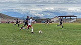 Courtesy photo Timbers North FC Boys 09 player Luke Fritts dribbles past a player from …