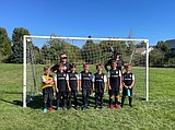 The Sandpoint Strikers FC U8 (Black) boys team poses for a photo after a game …