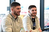 South Dakota State wide receivers Jadon and Jaxon Janke answer questions during FCS Media Day …