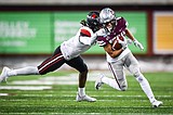 Grizzlies wide receiver Keelan White (6) breaks a tackle and heads upfield on a 42-yard …