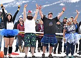 A group dressed in costumes from the Whitefish Credit Union readies to jump into the …