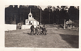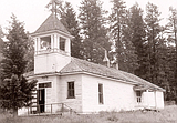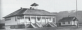 The Bigfork School with students playing. This school was located near where the tennis courts …
