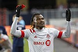 Toronto FC forward Ifunanyachi Achara (99) gestures to fans as he is taken out of …