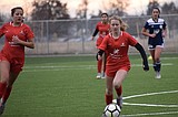 Photo by MARCEE HARTZELL Kennedy Hartzell takes a free kick from outside the 18, scoring …