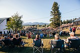 Festival fans relax on the grounds and listen to the music at the 2019 inaugural …