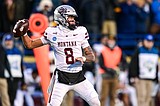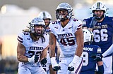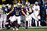 Bobcats linebacker Bryce Grebe (10) returns an interception for a touchdown in the fourth quarter …