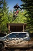 Parkin Costain jumps a 20-foot road gap at Legacy Bike Park (photo credit: Mitchell Bryan).