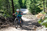 A Terraflow crew member takes a spin on a Legacy Bike Park trail overlooking Flathead …