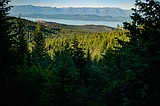 The road up to Legacy Bike Park looks down on Flathead Lake (photo credit: Lech …