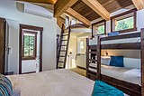 The interior view of one of the Snow Bear Chalets, including a glimpse up into …