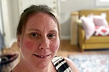 In this March 28, 2020 photo, Andrea Larson poses for a selfie during isolation in …