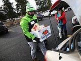 Volunteer Octavian Rivas with Idaho Central Credit Union helps load groceries. (LOREN BENOIT/Press)