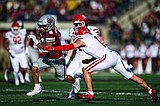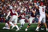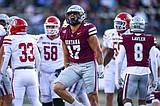 Grizzlies defensive end Kellen Detrick (47) celebrates after a stop in the third quarter against …