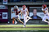 Grizzlies wide receiver Michael Wortham (6) picks up yardage on a reception in the first …