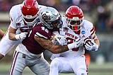 Grizzlies defenders put a stop to a run by South Dakota running back L.J. Phillips …