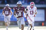 Grizzlies wide receiver Michael Wortham (6) heads to the end zone on a 53-yard touchdown …