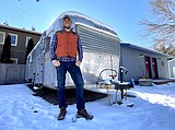 Josh Schukman outside the Airstream camper where he's lived and worked for 5 years (photo …