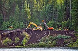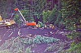 Crews and machinery working to clear the wreckage of the Montana Rail Link derailed coal …