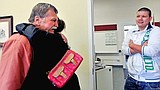 Kevin Calnan, director of Laser School, gets a hug from Carmina Lopez as her son …