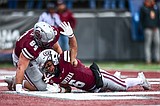 Grizzlies wide receiver Drew Deck (2) catches a 29-yard touchdown reception in the third quarter …