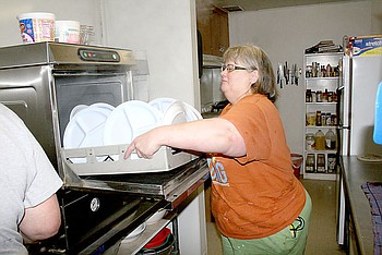 Michele Parkin stirs a pot of spaghetti at the Superior 4-H building during the shooting sport spaghetti feed. The event was a fundraiser to send two shooters to the NRA National Championship.