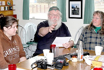 Herb Stelling emphasizes a point as he discusses the removal of an abandoned mobile home on his property with the Mineral County Commissioners.