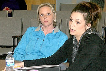 Kelann McLees and Kasey Feasel discuss the benefits of adopting a safety program for Mineral County at the weekly commissioner's meeting.