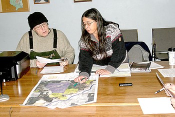 Deb and Ken Davis-Quitt discuss maintenance of the fairgrounds during the Mineral County Fair Board's March meeting.