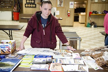 Kelly Burch helps out at the Plains V.F.W. as care packages were assembled earlier this week.