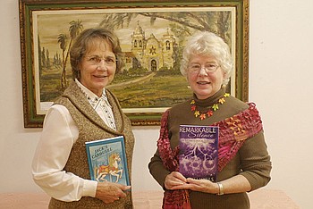Shirley Rorvik and Karen Wills display their novels after a book talk put on by the Hot Springs Artists Society.