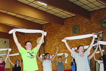 Thompson Falls Elementary first and second graders sing a classic holiday favorite, "Jingle Bells" Monday night at the annual Christmas concert. Grades kindergarten - fifth and sixth grade choirs and band performed Christmas holiday songs for adoring parents and relatives.