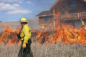 Plains-Paradise Rural Fire District Lt. Pat Irving, tends to the rollover, hosing the vehicle off.
