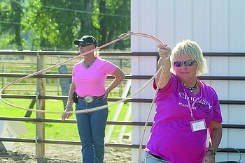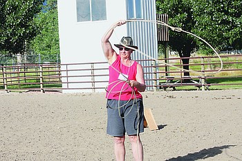 Julie White of Hot Springs works on her technique during the rodeo clinic. The clinic has become a staple event for the Chicks n' Chaps event.