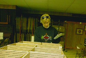 Justin Eaton handles a cardboard box during the e-recycling event in Thompson Falls last Friday and Saturday.