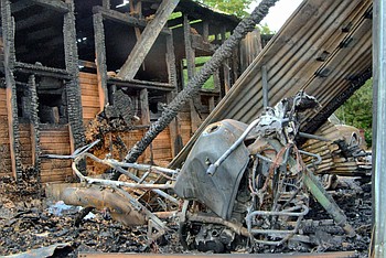 A fire destroyed a garage, three motorcycles and two cars Saturday night at 348 Willow Glen Drive near Kalispell.