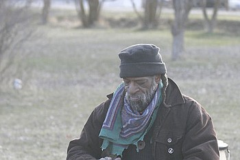 U.S. Navy veteran Jerry Messing of Thompson Falls examines boots at the Tri-State Veterans Stand Down at the Sanders County Fairgrounds on May 6.