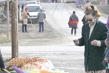 Sanders County Coroner and Sanders County Sheriff Deputy Johnson prepare a sheet for the confirmed fatality Thursday after a single-vehicle rollover in Dixon on Bench Rd.