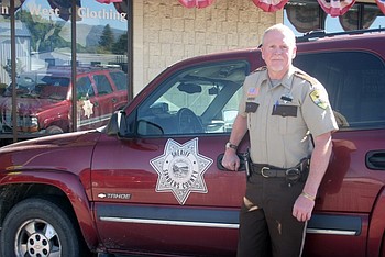 Deputy Dave Hedley holds the torch June 29 in Thompson Falls.