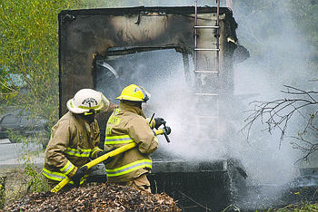 Emergency responders with the Glacier Park International Airport fire rescue crew, assisted by all units of Columbia Falls and Evergreen fire rescue, responded to a report of smoke billowing from an airplane hangar at GPI Airport at 9 a.m. on Friday morning.